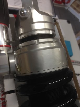 At TWOWHEEL Thomas unpacked the rear shock and next moment I got a another shock. The rear shock was quite oily. Thomas' opinion was: "It's too oily". He phone the wholesaler for another shock (the system in the morning has shown 3 of these shocks available).