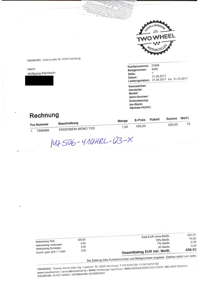 I just had everything prepared, Thomas was calling at 2pm. The shock was delivered to TWOWHEEL. I was going for another ride through Hamburg.