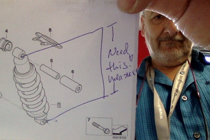 Already at BMW Motorcycle Center in Hamburg. Asking Ingo Kummerfeld for help. He gets the part number and accompanies to their parts department.